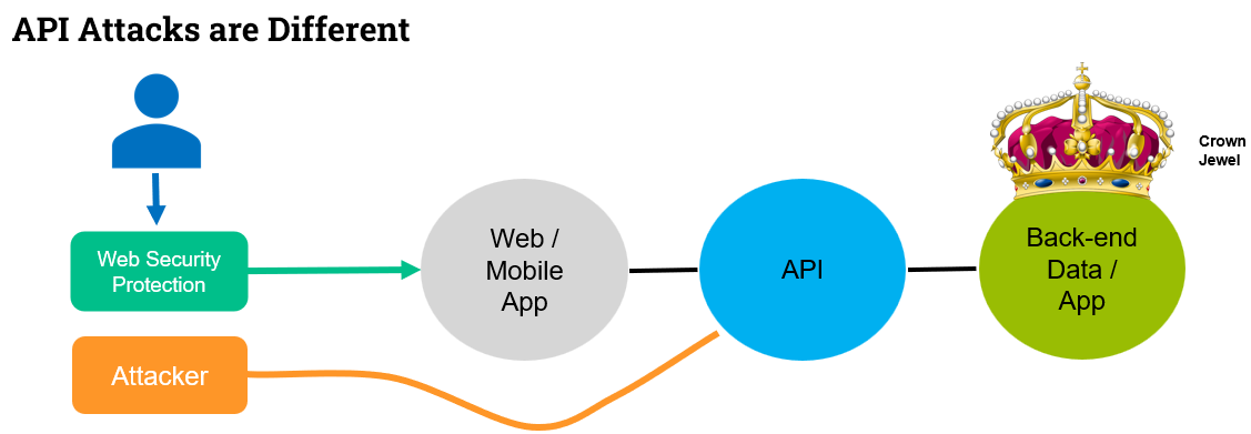 ในปัจจุบันสิ่งที่อันตรายจากการถูกโจมตีผ่าน API คือ "มันไม่เหมือนการโจมตีเว็บไซต์แบบเดิม" ผู้โจมตี ณ ตอนนี้ไม่จำเป็นต้องเจาะหน้าเว็บหรือแอปพลิเคชันมือถือ แต่สามารถมุ่งเป้าไปที่ API โดยตรง เพื่อเข้าถึงข้อมูลเบื้องหลัง (database) หรือ crown jewels ขององค์กร API จึงกลายเป็นทางลัดที่สามารถ bypass ระบบความปลอดภัยแบบเดิมได้ง่ายขึ้น
