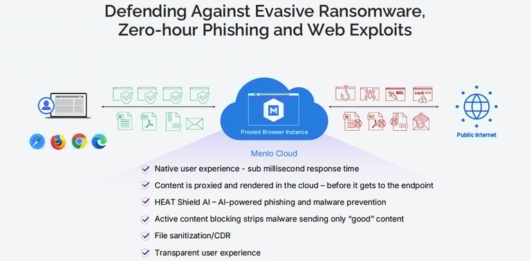 Menlo Security ใช้เทคโนโลยี Cloud Browser Isolation (CBI) ทำให้เว็บและไฟล์แนบที่มีความเสี่ยงถูกประมวลผลบน Cloud ก่อนเสมอ Endpoint จะได้รับเพียงผลลัพธ์ที่ปลอดภัย ปิดช่องทางโจมตีจาก Web, Email และ SaaS อย่างเด็ดขาด รองรับการทำงานยุค Hybrid และ Remote Workforce อย่างเต็มรูปแบบ